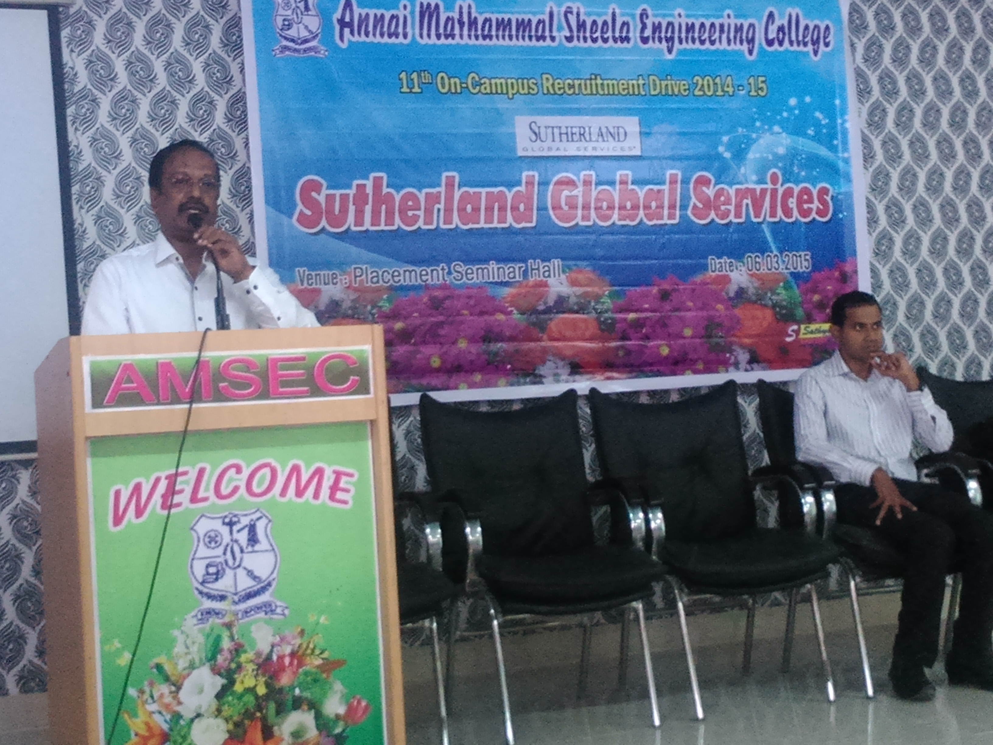 10th Campus Recruitment Drive for 2014-2015 is conducted by Ms.SUTHERLAND, CHENNAI.
